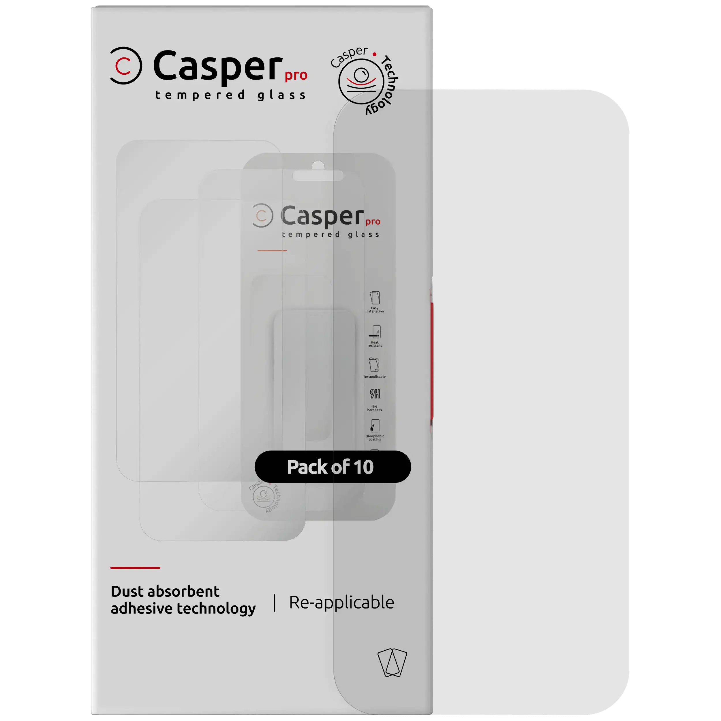 The Casper Pro Tempered Glass — 10-Pack Clear Compatible with iPhone Air is a bulk pack of high-quality tempered-glass screen protectors that deliver robust 9H-hardness scratch and impact resistance while preserving your display’s original clarity, brightness, and touch sensitivity. Once applied, the glass becomes optically transparent, ensuring your screen looks and feels unchanged — and installation is easy, clean and bubble-free (each piece comes with wipes and dust-removal stickers).